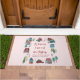 Invite guests to your Christmas party in style with our modern festive Christmas Cute pink Nordic Alpine ski lodge cosy chalet village with skiing people skier and children wintersport winter scene fun for Christmas Holiday in nature with white snow invitation. Original artwork by Caroline Bonne Müller