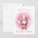 Cute Pink Watercolor Gnome Valentine Day Postcard