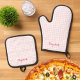 Cute Pink White Checkered Retro Rustic Monogrammed Oven Mitt & Pot Holder Set