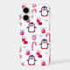 Cute Pink & White Christmas Pattern with Penguins Case-Mate iPhone Case