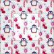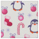 Cute Pink & White Christmas Pattern with Penguins Fabric