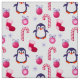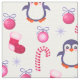 Cute Pink & White Christmas Pattern with Penguins Fabric