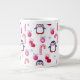Cute Pink & White Christmas Pattern with Penguins Large Coffee Mug