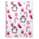 Cute Pink & White Christmas Pattern with Penguins Notebook