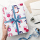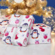 Cute Pink & White Christmas Pattern with Penguins Wrapping Paper