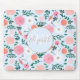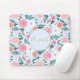 Cute Pink & White floral Paint Light blue design Mouse Pad