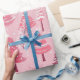 Pink and white Christmas trees are oh so cute in these whimsical retro watercolor holiday patterns. Of course, they are on a pink background, as well. Bearing stars, garlands, and lighting effects, there are also fun ephemera and decorative details on this roll of wrapping paper.
