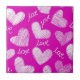 Cute Pink White Scribbled Hearts with Love Script Ceramic Tile
