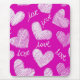 Cute Pink White Scribbled Hearts with Love Script Mouse Pad