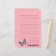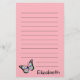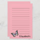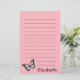 This lined stationery has a beautiful butterfly in the lower right corner. The pink paper also has display text at the bottom. You can edit the black text to show the recipient's name.