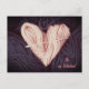 Beautiful photograph of a heart made of pink colored wool on a background of dark blue. I pierced a tapestry needle through it Like an arrow through the heart! A cute and quirky take on love and romance!