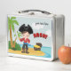 This is a standard metal lunchbox that appears to work just fine. We designed this box ourselves with an uploaded photo and custom text on the front and back. It looks absolutely beautiful except the front of the lunchbox is not centered like it shows in the photo. The print borders don't align with the inset flat part of the box where the preview photo online showed it perfectly centered in there. The back looks nice and centered though.