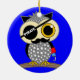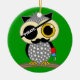 Funny and cute pirate owl with mustache and eye patch hook arm owl Christmas ornaments and gifts for owl lovers, pirates, bird lovers and ornithologists. Unique owl ornaments for the Christmas tree.