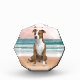 Cute Pitbull Dog Sitting on Beach with sunset Award