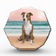 Cute Pitbull Dog Sitting on Beach with sunset Award