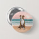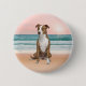 Cute Pitbull Dog Sitting on Beach with sunset Button
