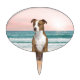 Cute Pitbull Dog Sitting on Beach with sunset Cake Topper