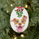 Cute Pitbull Dog Under the Mistletoe Ceramic Ornament