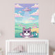Cute Pixel Art Cat with UFO in Pastel Sky Kawaii Poster