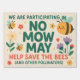 Cute Plastic Yard Sign for No Mow May, Bee Conserv