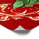 Vibrant flowers in various colors, including reds, yellows, and whites, adding a lively touch to the composition. The background is a striking red, which enhances the overall warmth and playfulness of the image. Intricate, decorative elements frame the scene, contributing to its artistic flair. Overall, the image exudes a cheerful and inviting atmospher