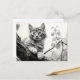 This black and white postcard features an adorable tabby kitten perched atop a branch, attentively surveying its surroundings. It's a beautiful image of nature's wonder and innocence.