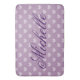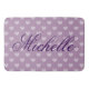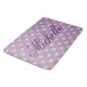 Cute plum heart pattern bath mat with custom name. Trendy heart polka dots design with custom background color. ie lavender purple. Chic stylish typography for monogram initial letters or name. Create your own classy bathroom interior with this stylish polkadotted print template. Personalized name initials. Pretty home decor ideas for your house. Unique wedding gift for new home / housewarming party.