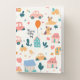 Cute pocket folders with pastel colors and a pattern of small cartoon houses, cars, and animals on bright background, adorned with whimsical patterns of small houses and cars, balloons, plants, a bright background, in a flat design, with no shadows, colorful illustrations, in a playful cartoon style, with cute designs, in high resolution, giving people a cheerful and elegant feeling, perfect for kid's creativity