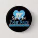 A beautiful white polar bear in the center of a pretty blue heart above the text SAVE THE POLAR BEARS in white and blue. This cute polar bear button is a cute stocking stuffer for a girl who likes animals.