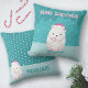 Cute Polar Bear Christmas Cartoon Kids Name Blue Throw Pillow