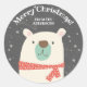 A cute bear over a snowy background decorates these fun Christmas stickers.