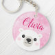 Cute polar bear custom name pink keychain