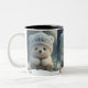 Cute Polar Bear in Snow Blue Hat Personalized Two-Tone Coffee Mug