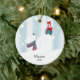 Cute polar bear Christmas ornament surrounded by winter trees and snow background. Personalize with name and year.