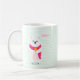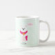 NewParkLane - Personalized Mug, with a cute polar bear with a hot pink scarf and an ice-cream, and a text balloon for your name or other personal text, against a fun mint green striped background.
