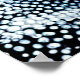 Polar bear sitting against a dark, starry background. The bear is rendered in a colorful, dot-style pattern that gives it a playful and whimsical appearance. It wears a vibrant orange scarf that adds warmth to the scene. The snowy ground beneath the bear is also illustrated with a dotted texture, and the surrounding stars and colorful dots create a festive, wintry atmosphere. The overall effect is bright and cheerful, blending elements of nature with artistic expression.