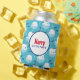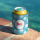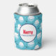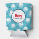 Can cooler with a cute Christmas pattern featuring polar bears standing on floating ice wearing red santa hats. Little igloos, snowflakes and fish surround these adorable polar bears chilling on the water. Light blue background. Cute and whimsical holiday design. merry christmas written inside a circle.