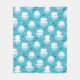 A blanket with a cute Christmas pattern featuring polar bears standing on floating ice wearing red santa hats. Little igloos, snowflakes and fish surround these adorable polar bears chilling on the water. Light blue background. Cute and whimsical holiday design.