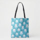 Tote bag with a cute Christmas pattern featuring polar bears standing on floating ice wearing red santa hats. Little igloos, snowflakes and fish surround these adorable polar bears chilling on the water. Light blue background. Cute and whimsical holiday design.