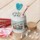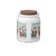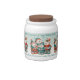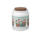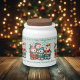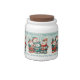 Get in the holiday mood with this candy jar, which features a repeating pattern of an AI-generated image of Norwegian polar bears, whimsically dressed up in festive scarves, toques, pants, and shoes, with decorative touches of holly leaves and berries, and caroling "Sweet 'n' Tasty Tidings and a Very Beary Christmas!" from their songbooks. Customize messaging as desired.