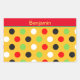A cute polka dot design, this item features an orange background with black, red, yellow and green dots. Personalize yours today!