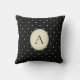 Personalized your space with your monogram in an elegant oval frame on a black pillow sprinkled with distressed ivory polka dots.