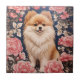 Cute Pomeranian Dog Pink Floral Ceramic Tile