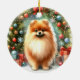 Cute Pomeranian Watercolor Festive Christmas Ceramic Ornament