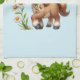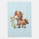 A kitchen towel with an adorable illustration. A little brown pony happily eating daisies.