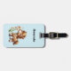 A luggage tag with an adorable illustration. A little brown pony happily eating daisies.