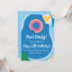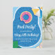 Celebrate your child's pool birthday party with this hand-drawn illustration of a pool, donut float, umbrella, leaves, flip-flops, and a towel! This design is perfect for all ages who want to have a fun swim party.