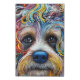A vibrant digital art piece depicting a Yorkshire Terrier in a pop art style, using repeating patterns and a playful attitude