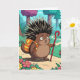 A cute porcupine hiking along a trial in the woods. A sweet birthday card for your grandson.