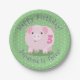 Cute potbelly pig cartoon personalized birthday paper plates